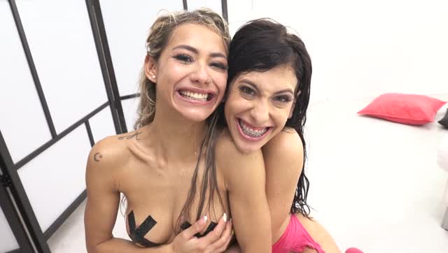 Lippy Penny Barber has her face shoved into a box, dicked down 2 big cocks, uncontrolled squirting!